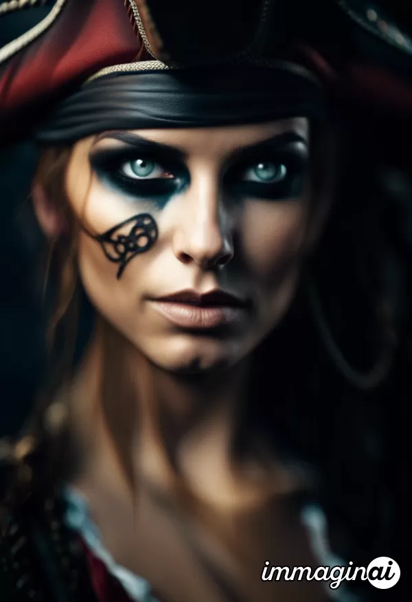 Beautiful Pirate Woman with heave make-up, only one eye with black bend