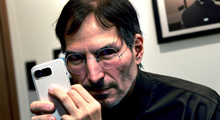 Steve Jobs selfie con uno smartphone Android