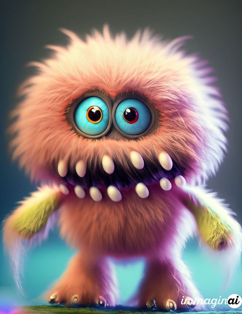 Gorgeous and funny little furry monster with big eyes and a frightened look