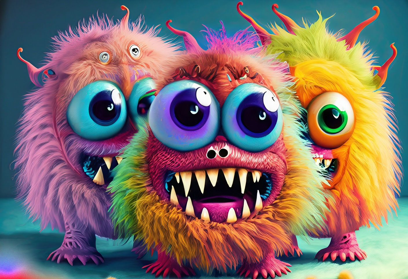 Many stunning funny furry monsters with big mouth and big teeth creati tempo fa con Firefly.