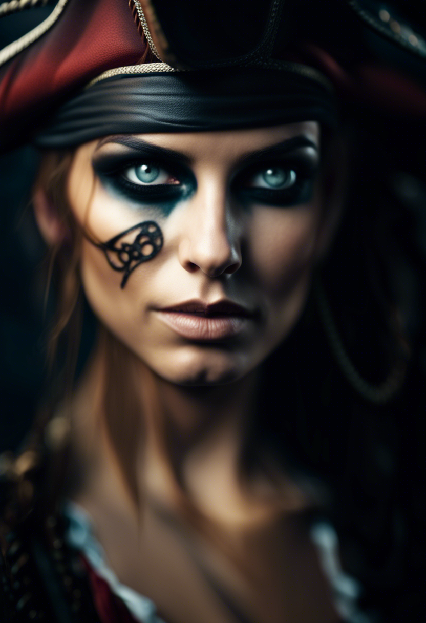 Beautiful Pirate Woman with heave make-up, only one eye with black bend
