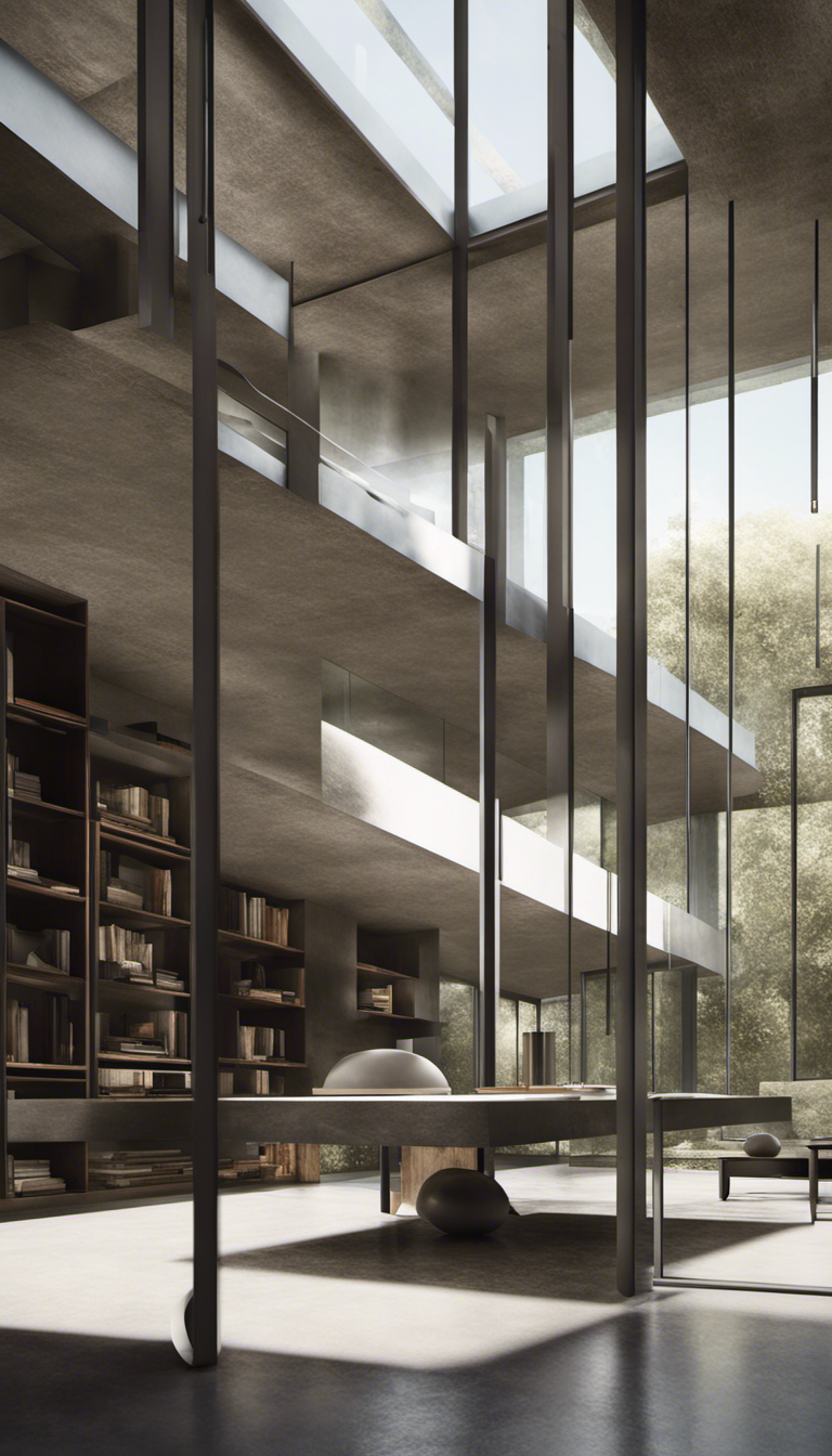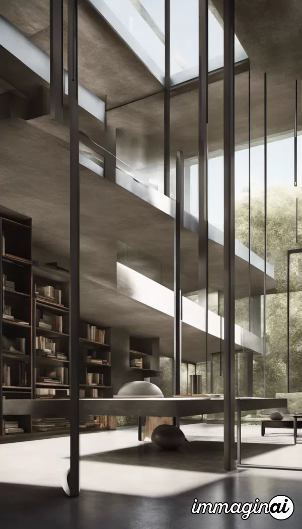 Residential home high end futuristic interior, olson kundig::1 Interior Design by Dorothy Draper, maison de verre, axel vervoordt::2 award winning photography of an indoor-outdoor living library space, minimalist modern designs::1 high end indoor/outdoor residential living space, rendered in vray, rendered in octane, rendered in unreal engine, architectural photography, photorealism, featured in dezeen, cristobal palma::2.5 chaparral landscape outside, black surfaces/textures for furnishings in outdoor space::1 --q 2 --ar 4:7