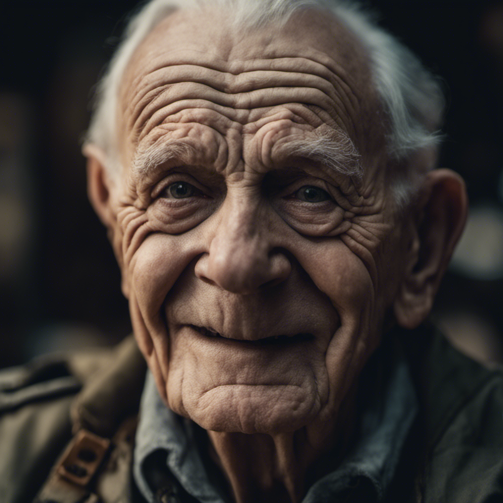 photograph close up portrait 85-year-old tough decorated general, clean shaven, kindly smiling at camera, stoic cinematic, 4k, epic detailed, shot on kodak, detailed, dark moody