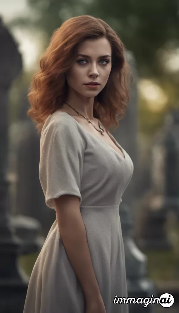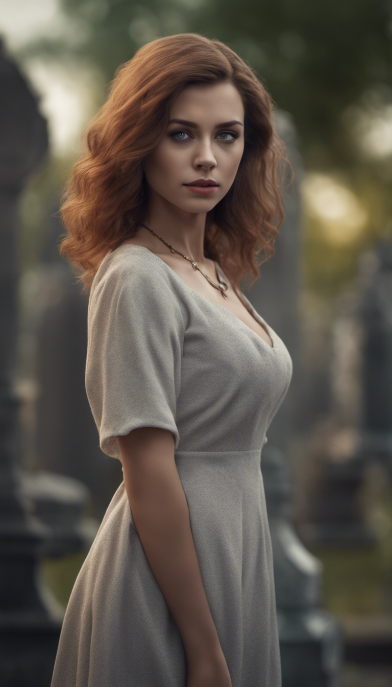 gorgeous female standing in cementary, attractive, flirting, looking at viewer, portrait, photography, detailed skin, realistic, photo-realistic, 8k, highly detailed, full length frame, High detail RAW color art, piercing, diffused soft lighting, shallow depth of field, sharp focus, hyperrealism, cinematic lighting