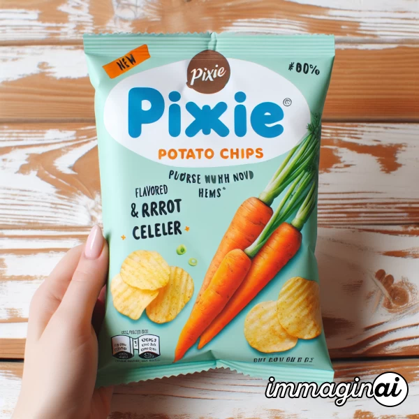 Un pacchetto di patatine vegane al sapore di carota e sedano chiamate